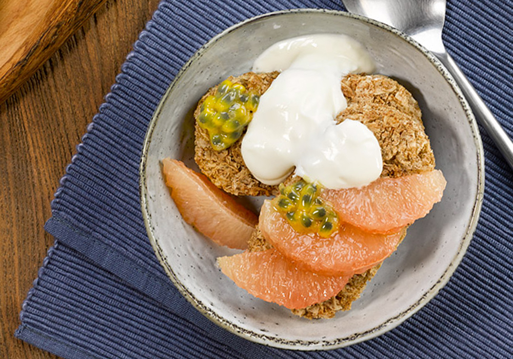 - Βάλτε δύο Weetabix σε ένα μπολ, ρίξτε από πάνω γιαούρτι, τα κομματάκια γκρέιπφρουτ, το φρούτο του πάθους χωρίς κουκούτσια και απολαύστε!